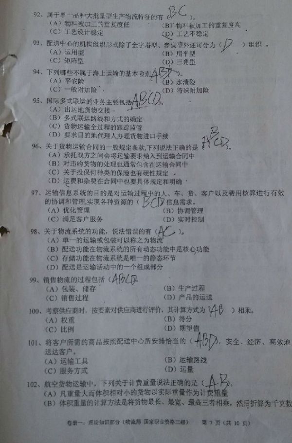 2014年上半年三級物流師考試?yán)碚撜骖}